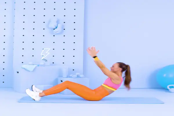 Comment : Commencez à vous allonger sur le dos, bandez autour des cuisses, jambes sur la table. Placez les mains derrière la tête avec les coudes écartés et ramenez le menton vers la poitrine. Ouvrez les jambes en V lorsque vous appuyez les orteils sur le sol, puis revenez en position de dessus de table. C'est un représentant.