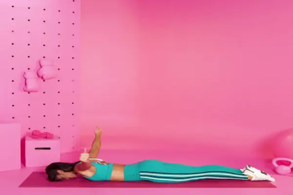 Comment : Commencez à vous allonger face contre terre, le ventre sur le tapis. Les mains doivent être étendues sur les côtés comme un « T » avec les pouces pointés vers le haut. En gardant les bras tendus, levez les bras en gardant les pouces pointés vers le plafond. Le regard doit être dirigé vers le sol à quelques centimètres devant vous, le cou détendu. Faites une pause en haut, en bas et répétez.