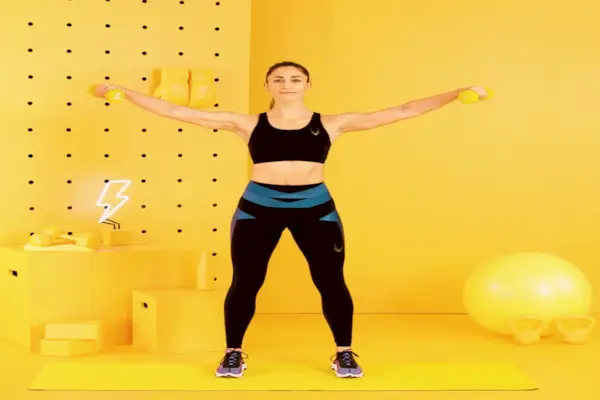 - Sans plier les bras, soulevez-les et tout droit sur le côté jusqu'à ce qu'ils soient au niveau des épaules.