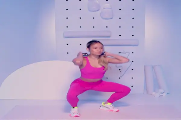 - Engagez le tronc, repoussez les hanches et abaissez lentement jusqu'à ce que les cuisses soient parallèles au sol.