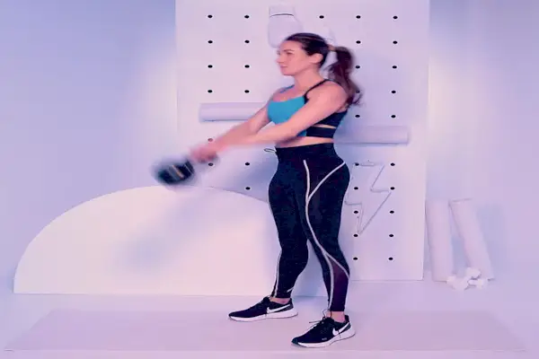 Pour un conseil : La kettlebell doit naturellement osciller entre vos jambes, n'utilisez pas la force de vos bras pour la déplacer.